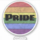 LGBT flag vintage digital art rainbow colours red orange yellow green blue purple with black lines stripes wood disstresed look in circle.