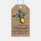 Give the gift of homemade Limoncello. This kraft gift tag shows an image of a vintage lemon illustration on a background image of burlap NOT REAL BURLAP. Personalized with the year it was made. The back has a red heart "made with love", and is personalized with your name. Customize the old fashioned font and text. A chic and trendy look, for an elegant homemade gift or wedding guest thank you favour. To see more wonderful products, Please visit "The Hungarican Princess - A Boutique" @ zazzle.com/hungaricanprincess. Traditional Lemoncello , Limoncello or Lemon Canning. Wine tags with lemon image.
