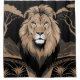 Vintage Lion Portrait, this design features a vintage illustration of a portrait of a lion with a calm and superior appearance. The background is a black and white safari landscape with trees and mountains. The overall image has an art deco style.