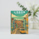 Capture the vibrant and soulful energy of the Portuguese capital with this elegant Lisbon, Portugal Travel Card. This vintage-style illustration features a quintessential yellow electric tram climbing a steep cobblestone hill lined with colorful, tiled buildings in shades of blue, yellow, and terracotta.