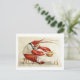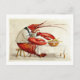 This postcard is a reproduction of a vintage Victorian trade card showing a lobster in a tuxedo jacket serving himself a salad.