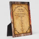 Vintage look Personalized Plaque for Any Occasion or Award. Warm tones of faux antique paper against rustic weathered barn board is a handsome setting for your special message typed into the 3 text box templates. You can Add YOUR PHOTO and YOUR TEXT. Designers Rod or Linda: 239-949-9090 to can add Photo templates to fit your pictures perfectly. Sizes 8 X 10 is shown or select the 5 X 7 or 5.25 X 5.25 inch Custom Plaque.