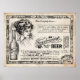 This Tannhaeuser beer reproduction print was from an actual ad that appeared in the early 1900's, before prohibition. It has been digitally restored and placed on an aged look background to appear as a vintage print. The Tannhaeuser beer print is ready to frame and may be re-sized to fit your needs but make sure the dimensions hold the entire beer graphic. Tannhaeuser was made by the Claussen Brewing Association in Seattle. Great print for any collector of vintage beers or any business looking for a turn of the century theme.