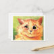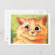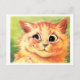 This fun card for cat lovers and cat owners features the wonderful, whimsical world of famous English cat artist Louis Wain. The painting shows a cute little ginger tabby cat with a big bashful smile on his face. He's shown against a grass green background. The postcard would be perfect for anyone who likes cats and vintage cat art, especially the work of Louis Wain.