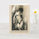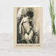A vintage sepia-toned photograph of a young woman in her boudoir in a provocative pose while wearing silky lingerie. This photo would have been very naughty during the year it was taken, but not by today's standards. The message on the front of the card says, "If love is blind, why is lingerie so popular?" The card is blank inside for your own message.