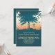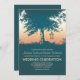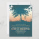 Romantic vintage blue wedding invitation with old love heart tree and birds cage hanging on the tree branches.Perfect sunset romantic mood invite for your rustic country outdoor wedding with tree and bird cage decor.