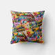 Adventure awaits! This throw pillow features colourful vintage labels from hotels around the world. Perfect for a travel-themed kids' room, baby shower, bridal shower, graduation party, or any other event for someone who's going places!