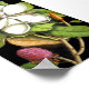 Beautiful vintage design depicting a large white magnolia flower and bud on a contrasting black background.