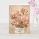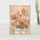 A refined vintage-style illustration featuring blooming magnolia flowers in soft pink tones with delicate buds and foliage. The composition is set against an aged, textured background with subtle script details, creating an elegant and timeless botanical design.
