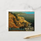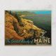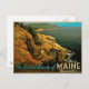 Dramatic rocky cliffs line the Atlantic Ocean in this striking vintage style image of Maine. "The Coastal Beauty Of Maine" is the text.