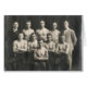 This card features a vintage photograph of a male wrestling team from the early 1900s.