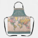 Vintage Map World Atlas Travel Lover's Apron. A vintage map on the lower half of the apron on a deep sage green background. The Upper part (the bib area"