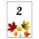 Add a touch of autumn elegance to your event with these vintage maple leaves table cards. Featuring customizable numbers and background colours, these cards are printed on both sides for a polished look. Perfect for any fall-themed celebration, they combine functionality with a stylish design.