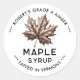 Editable homemade maple syrup canning label featuring a vintage style maple leaf illustration. Make your own canning labels for your favourite homemade recipes. Perfect for preserves, homemade gifts or as kitchen pantry organiser.