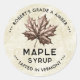 Editable homemade maple syrup canning label featuring a vintage style maple leaf illustration. Make your own canning labels for your favourite homemade recipes. Perfect for preserves, homemade gifts or as kitchen pantry organiser.
