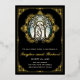Invitation de mariage vintage avec des ornements en feuille d'or et des noms sur le côté avant. Vitraux Art nouveau avec ornements or. Arrière avec votre photo.