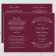 Dramatic vintage scrollwork in shimmering silver sets the stage against a deep maroon background for a sophisticated ceremony program. Ornate flourish accents frame your names and wedding date on the front cover, with an elegant coordinating back design. Fully customizable inside pages accommodate your bridal party details, ceremony order, and a heartfelt thank you note. Programs are printed on text-weight paper and arrive flat, requiring a simple centre fold.