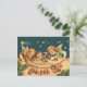 Vintage christmas image featuring three angels putting up Christmas decorations, wishing you a merry christmas.
