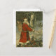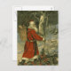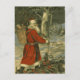 Vintage Christmas greeting from 1909 featuring St. Nicholas in the forest with a basket of toys.