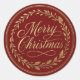 Classic round Merry Christmas stickers featuring elegant gold calligraphy on a deep red background — perfect for holiday gift wrapping, envelopes, and party favors.
