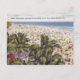 Vintage postcard showing visitors to the beach in Miami, Florida. The postcard reads: "Daily Thousands, seeking Health Rays of the Sun, Miami Beach, Fla.".