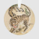 A ‘Minhwa’ represents Korean folklore created by unknown artists over centuries. The tiger is a figure associated with the Korean culture and an ugly or misshapen animal can represent foolish or corrupt aristocrats according to legend. This vintage painting depicts a tiger under a pine tree with two wise magpies.