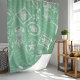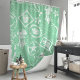 Embark on a seaside adventure with this vintage-inspired shower curtain. The design features distressed nautical stamps showcasing sea turtles, anchors, starfish, and seashells in warm Mint Green tones, reminiscent of postcards from a bygone era. The mint green background creates a relaxing and inviting atmosphere for your bathroom.
