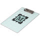 Vintage Mint Green Stripes Pattern Black Monogram Clipboard