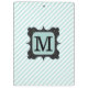 Chic mint green and white striped pattern with vintage inspired black border with distressed look for you custom monogram.