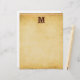 Add any initial, name, or text to personalize this custom letterhead stationery on old vintage rustic parchment style antique looking linen look texture paper or just delete the sample initial monogram M to write on later. Nice for men and women of any age.