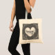 Vintage monogram heart wedding party tote bags for bride's entourage. Rustic design for shabby country chic marriage. Grey or custom background colour. Stylish script typography for personalized name or monogrammed name initial letters. Make one for elegant bride, bridesmaid, maid of honour, flower girl, mother of the bride etc. Includes romantic swirls and big faded rustic weathered heart love symbol. Distressed shabbychic look. Grunge DIY style graphics. Swirly corner borders.