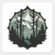 A vintage-inspired emblem featuring a majestic mountain range, towering trees, and a starry night sky. The design is framed within a circular border with intricate details, adding to the overall sense of elegance and sophistication.