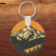 A vintage-inspired design featuring a majestic mountain peak bathed in the warm glow of a setting sun. The mountain is surrounded by a dense forest of pine trees, creating a peaceful and serene atmosphere.