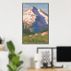 This is one in a series of posters celebrating the majestic peaks of the Cascade Range. Northwest artist Mitch Frey draws inspiration from the National Park advertisements of the 1930s-1940s. Great care is taken in rendering each shape and colour. Looking at the coordinated palette, elegant strokes and integrated text, the viewer will recognize that this is much more than a mass-produced image with interchangeable labels. This scene is a pleasure to view up close or across the room.