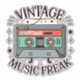 Vintage Music Freak, this music design features an old school eighties style cassette tape with text saying, "Vintage Music Freak".