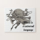 Give a music lover a challenge with this puzzle featuring a vintage etching of musical instruments, sheets of music, and adorable birds. This black and white design is accompanied by "Music is a universal language" which can easily be customized to suit your needs.