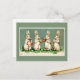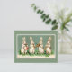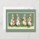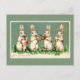 An orchestra of four white Easter Bunnies; each playing different musical instruments. Message: A Joyful Easter. Image of a Vintage Easter Card on a custom green background.