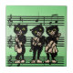 This is a 1930's vintage image of three jazz playing musician black cats with green eyes playing their musical instruments. They are making music notes with a saxophone, fiddle, and guitar. See my store for other products with this design.