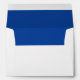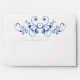 This is your basic white invitation envelope with a solid navy blue interior. The back flap has an added attraction, a distinguished and dramatic matching vintage blue ornate swirl. This formal envelope works well with any 5 x 7 or smaller invitation, and is especially pretty for wedding, bridal shower, or baby shower invitations. To see other sizes available, choose "Customize". You may also use that option to change the outside colour of the envelope from white to a variety of colours.