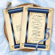 This vintage elegant Quinceañera invitation features navy blue and gold scroll with gold filigree accents on old parchment paper background. Easily customize by clicking "Personalize" to add your text.