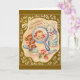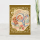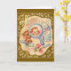 Retro / Vintage New Baby greeting card. Sweet little baby looking in a mirror that is being held up by a teddy bear and a bunny rabbit! Congratulations Baby And Parents!