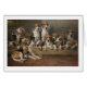 Vintage artwork titled "New Forest Foxhounds" by John Emms depicts a group of foxhounds in a barn or stable. Some are lying down resting while others sit upright. All, though, are alert with eyes wide open. Could they be waiting to be called for the hunt? The English artist, John Emms (1844-1912) was an avid hunter and became famous for his paintings of sporting scenes, horses and dogs, particularly Foxhounds and Terriers. He married a woman from Lyndhurst in 1880, and after a brief residence in London, they returned to Lyndhurst where they established a home and studio called The Firs. Emms lived there for the remainder of his life. He was famous not only for his artwork, but also for his big personality, flamboyant style of dressing, and often careless spending of money. This card is blank inside for your own message.