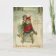 A vintage New Year's card illustration features a boy and girl bundled up for winter. They're sledding down a snow-covered hill, eyes wide with excitement. The verse on the front of the card says, "Bright hopes for the future. Sweet memories for the past. New Year Greeting." The message inside the card is, "Wishing you a bright and happy New Year!"