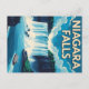 A classic vintage travel poster captures the powerful Niagara Falls, with two tour boats navigating the rushing waters below, all under a dynamic blue sky with soft clouds. "NIAGARA FALLS" is prominently displayed at the top.