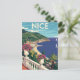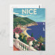 Capture the chic elegance of the French Riviera with this vintage-style postcard featuring the stunning coastline of Nice. The artwork showcases the iconic Promenade des Anglais, beautiful villas, and the deep blue waters of the Mediterranean Sea, all framed by vibrant flowers and palm trees. This stylized travel poster evokes a classic, sun-soaked holiday, making it perfect for a vacation souvenir, a note to a friend, or a beautiful piece of retro art for your home.