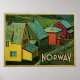 This charming and colourful Scandinavian scene features a row of brightly painted houses in a village in Norway.