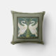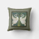This lovely pillow features a reproduction of a section of wallpaper by Walter Crane of the English Arts and Craft fine art movement (c 1900). The design depicts 2 white Swans amid pale green rushes on a muted blue background, framed in a mossy, sage green with an accent outer frame in dark moss and gold.