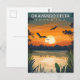 Experience the magic of the African wilderness with this stunning Okavango Delta Botswana travel postcard! This captivating illustrated design captures the serene beauty of the Okavango Delta at sunset, featuring a dramatic, warm-toned sky reflected on the calm waters.