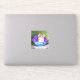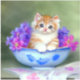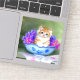 Sticker featuring an orange and white striped kitten. The kitten’s big blue eyes stare out as it sits in a blue bowl with pink and purple flowers. A great gift for cat lovers and Victorian art enthusiasts!