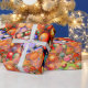 A beautiful collage of vintage Christmas ornament illustrations will give your presents a savory, old world feel. This larger size will be nice for those bigger items.